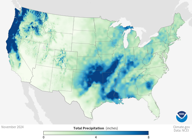 Under these conditions, a constant presense of low clouds, high humidity, minimal winds, and light rain can persist for a number of weeks in the South.
