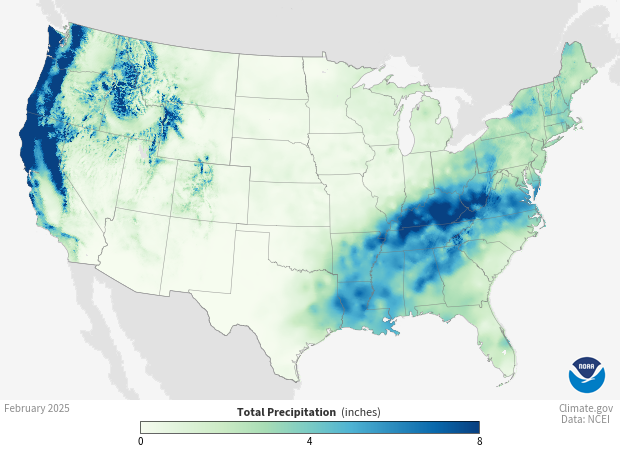 Examples are most obvious in the winter, when unusually warm temperatures extend up into Iowa, preceding rain or snow on the leading edge of the cold front, or a cold snap reaches down into the Carolinas, after the passage of a cold front.
